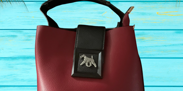 Embossed design with a bucklle that Frames your favorite breed. Polished pewter breed of your choice. Avail in Burgundy, Caramel, Black, or Taupe.