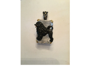 Cubic Zirconia stones, available in many colors (amber, ruby red, emerald green, pink, yellow topaz, smoky topaz,deep blue, aqua blue, amethyst purple /lightand dark, black and clear. Dogs are made of fine pewter and handpainted with great detail. Beautiful pieces that are sure to guaranteed to bring compliments! . Many AKC breeds o